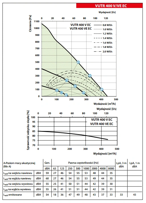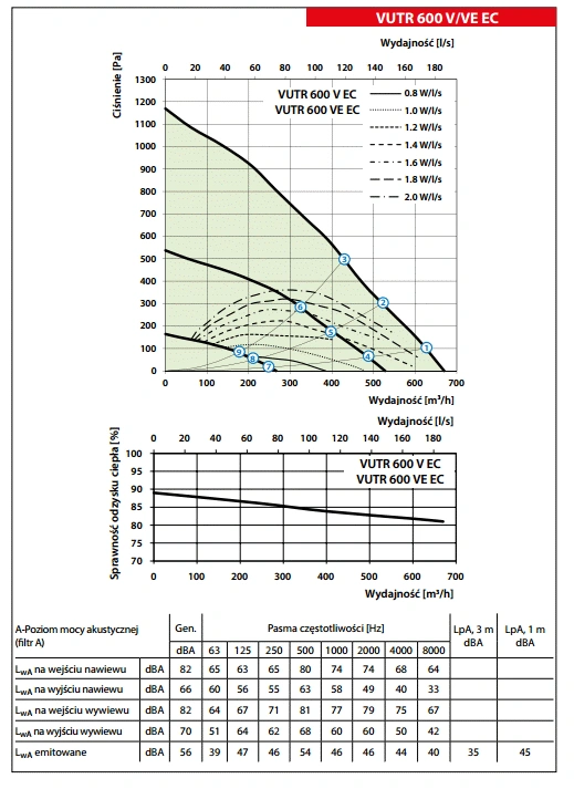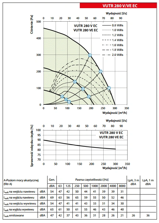 - Temperatura transportowanego powietrza [°C]: od -25 do +40