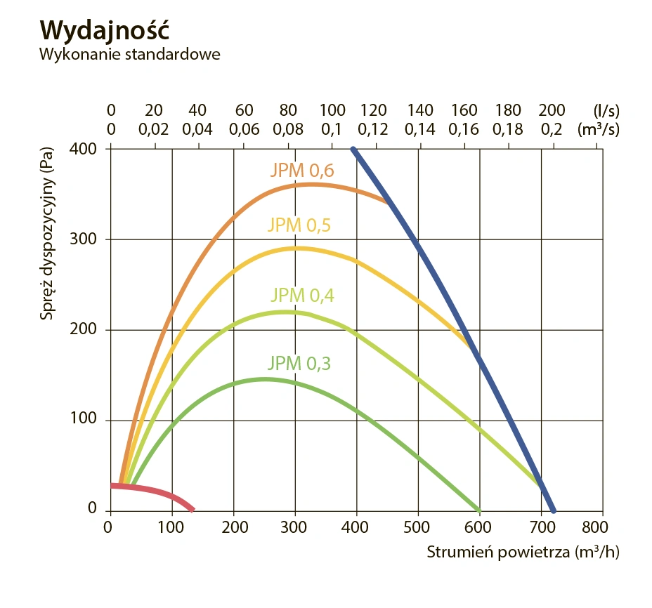 - Klasa energetyczna – A+, pobór mocy przez napęd wentylatora przy przepływie maksymalnym – 178 W.
