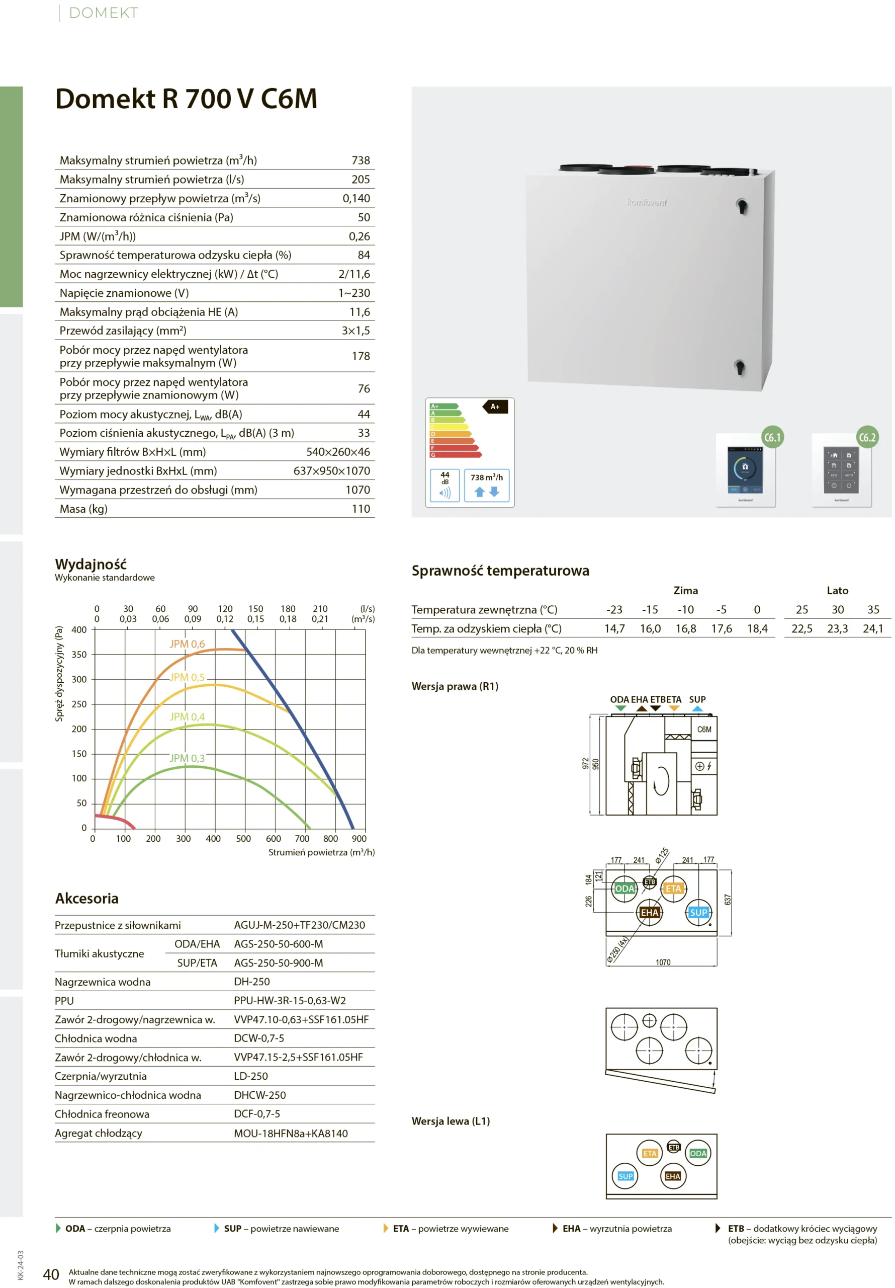 DOMEKT R 700 V to zaawansowana centrala wentylacyjna, która łączy w sobie wysoką efektywność energetyczną, inteligentne sterowanie oraz łatwość montażu i obsługi, co czyni ją idealnym rozwiązaniem dla domów o powierzchni od 201 m² do 250 m².