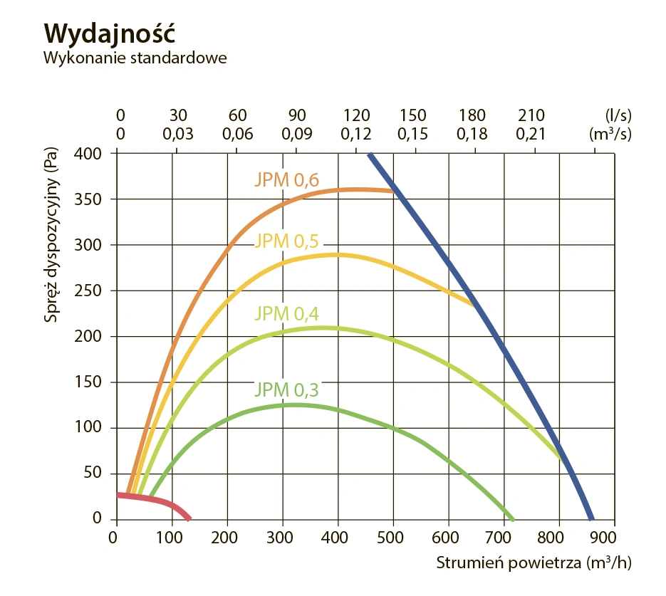 - Wyjątkowo energooszczędny – brak nagrzewnicy wstępnej, bardzo niski współczynnik JPM – 0,26 (W/m3/h), klasa energetyczna A+