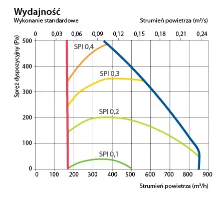 - Maksymalny strumień powietrza – 790 m3/h.