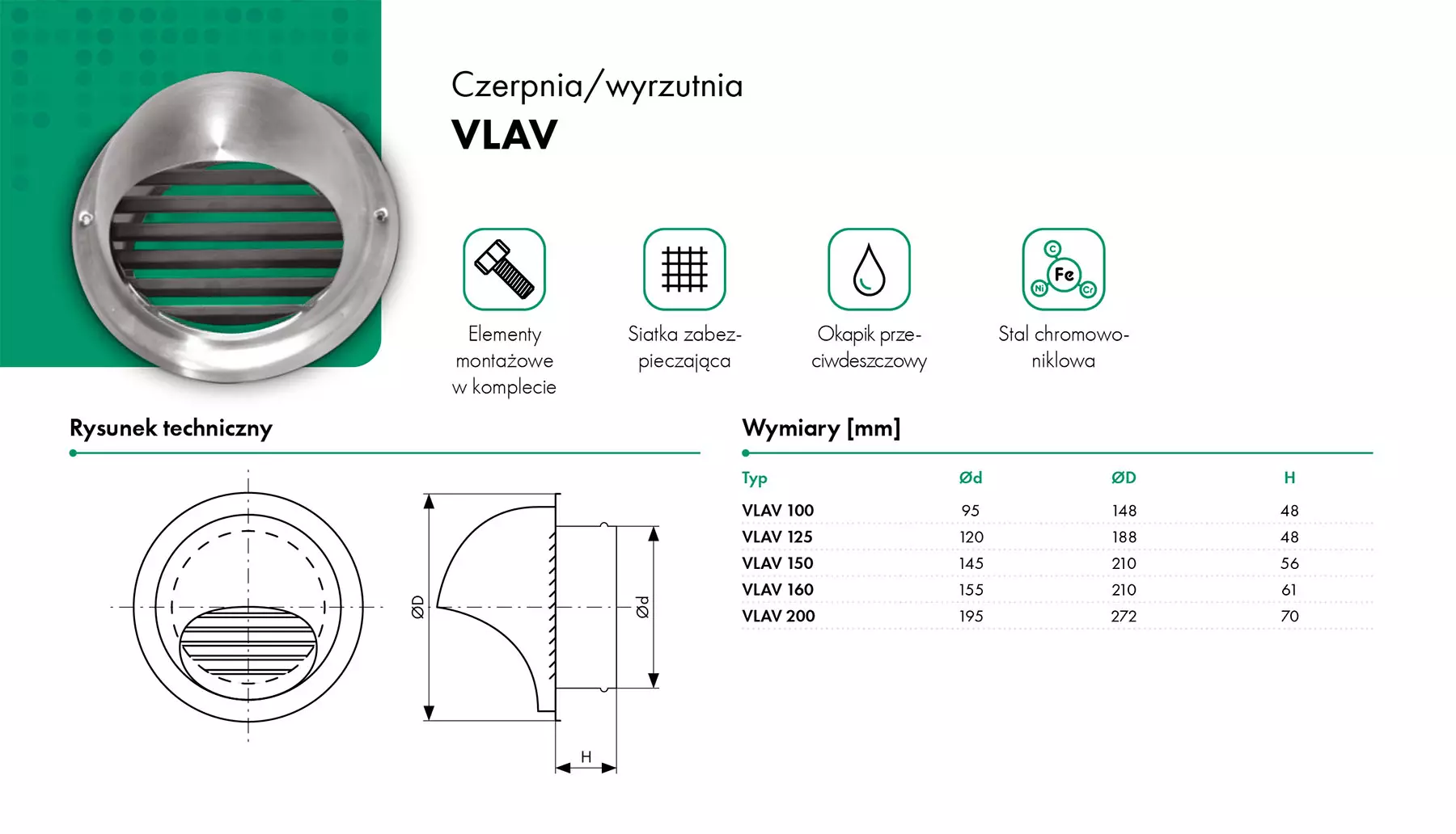Czerpnia/wyrzutnia ścienna VLA to produkt, który łączy w sobie funkcjonalność, łatwość montażu oraz estetyczny wygląd, spełniając różnorodne wymagania w dziedzinie wentylacji.