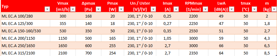 Wentylator kanałowy ML EC.A