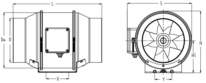 Wentylator został wyposażony w bez szczotkowy synchroniczny silnik komutowany elektronicznie EC ze zintegrowanym zabezpieczeniem termicznym oraz wirnik o specjalnie profilowanych łopatkach. Silnik przystosowany jest do płynnej regulacji prędkości obrotowej w pełnym zakresie przy zachowaniu wysokiej sprawności.