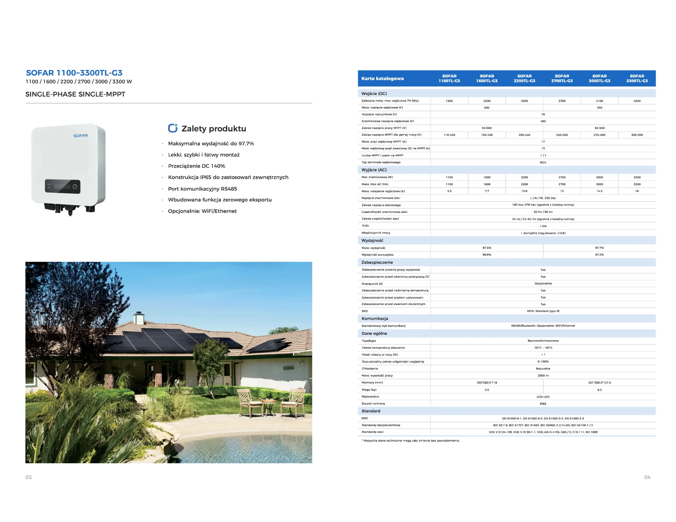 Urządzenie zostało zaprojektowane z myślą o trwałości i odporności na warunki atmosferyczne. Solidna obudowa falownika SOFAR 3300W1F zapewnia niezawodną pracę przez wiele lat, nawet w trudnych warunkach zewnętrznych. Spełnia ono również międzynarodowe normy jakości i bezpieczeństwa, co gwarantuje jego długowieczność i bezpieczeństwo użytkowania.