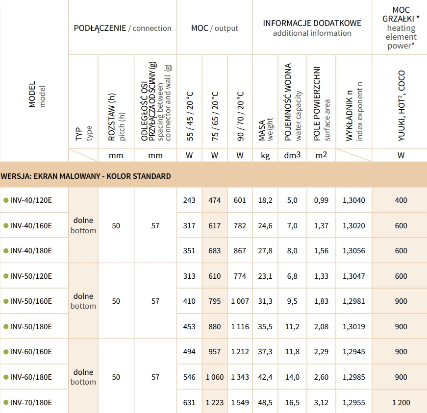 Model INVENTIO dostępny jest w kilku wariantach wymiarowych, co pozwala na jego idealne dopasowanie do konkretnego pomieszczenia. Łatwy montaż i praktyczne rozwiązania konstrukcyjne sprawiają, że instalacja grzejnika przebiega szybko i bezproblemowo. Dzięki temu można w krótkim czasie cieszyć się zarówno jego funkcjonalnością, jak i walorami estetycznymi.