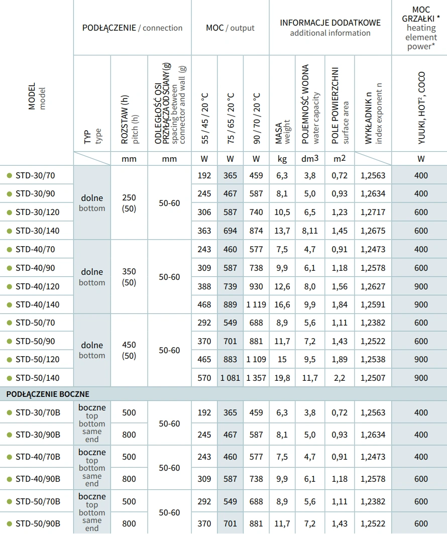 Rodzaj zasilania: wodne, z opcją zakupu grzałki elektrycznej