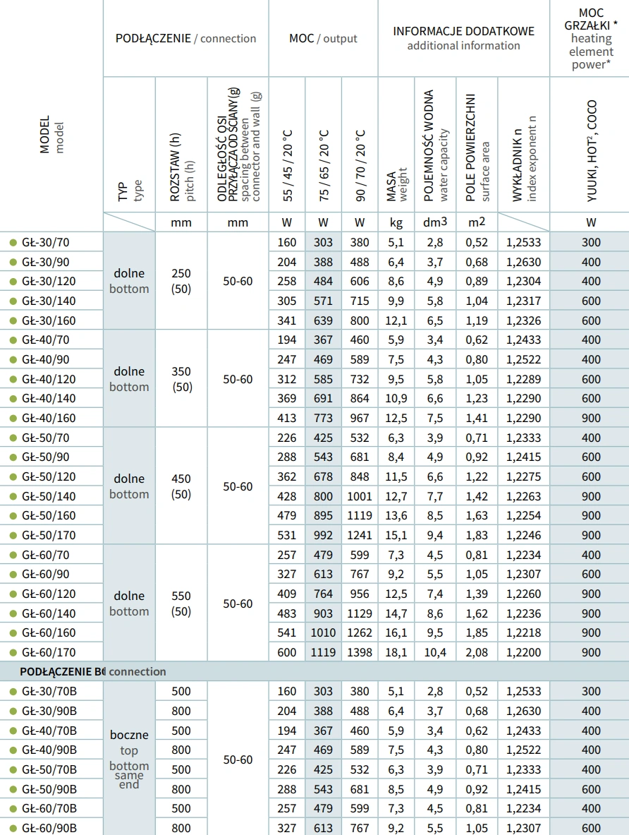 Rodzaj zasilania: wodne, z opcją zakupu grzałki elektrycznej.