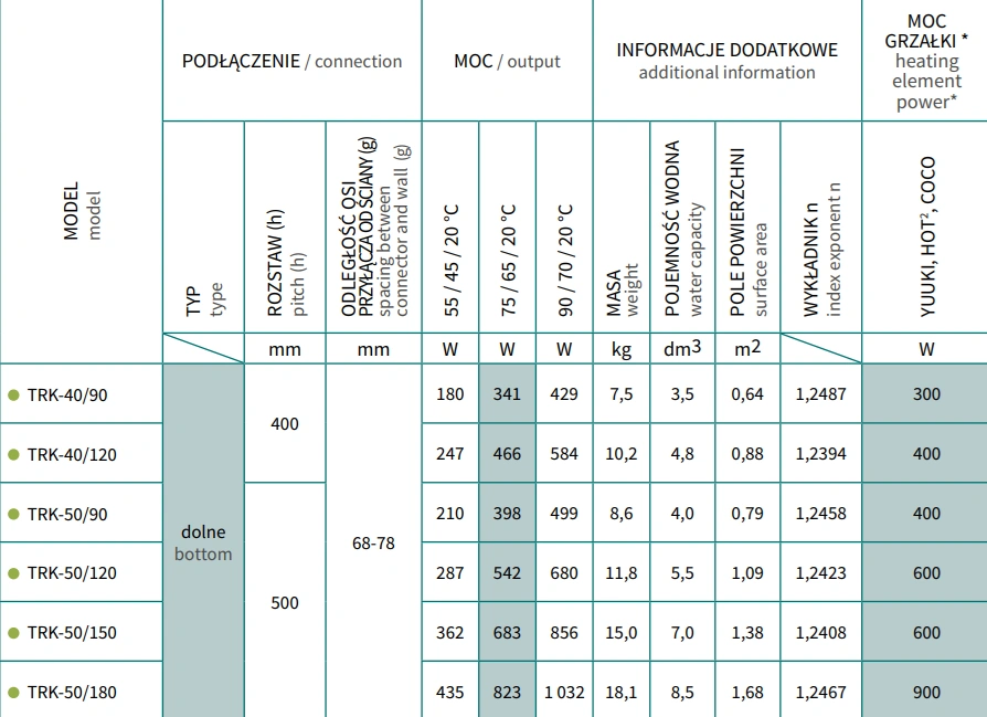 Rodzaj zasilania: wodne lub elektryczne (po zastosowaniu grzałki elektrycznej, sprzedawanej oddzielnie).