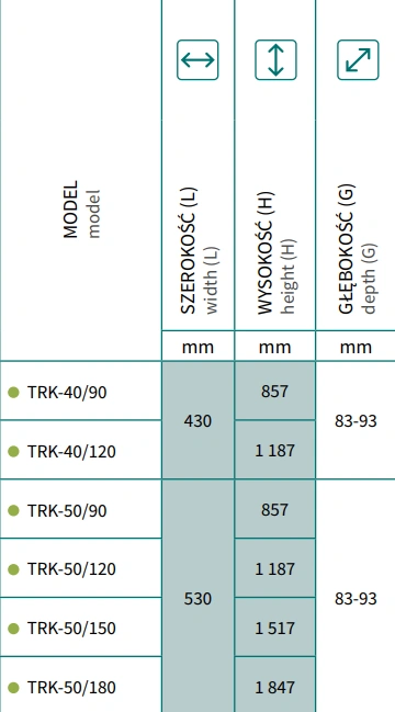 Zastosowanie: łazienki, kuchnie, garderoby, pralnie, pokoje kąpielowe i pomieszczenia pomocnicze.