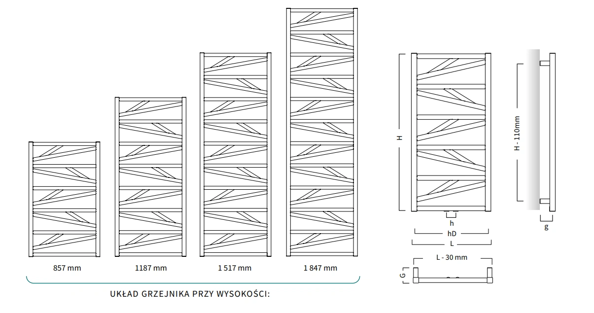 Budowa: pionowe kolektory i poziome rurki o harmonijnym układzie, średnica rur D25 mm.