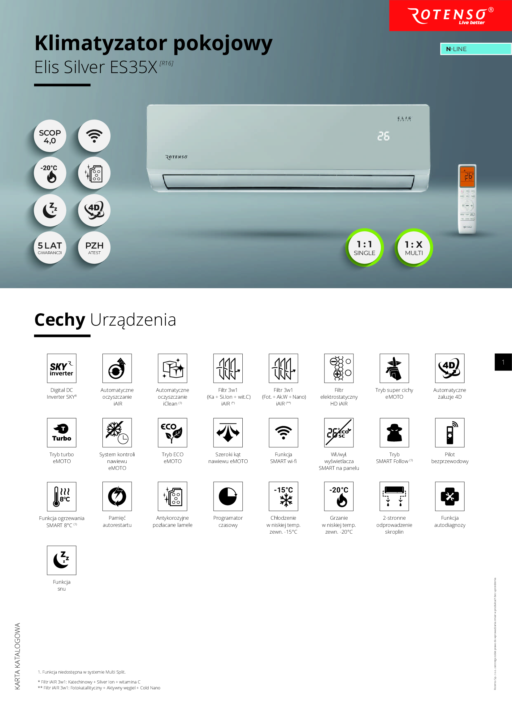 Klimatyzator Elis z serii X jest wyposażony w filtr elektrostatyczny HD iAIR oraz 2 filtry typu 3 w 1 /katechinowy + Silver Ion + witamina C/ i / fotokatalityczny + aktywny węgiel, Cold Nano/.