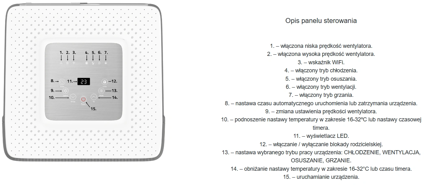 Tryby pracy: chłodzenie, osuszanie, wentylacja