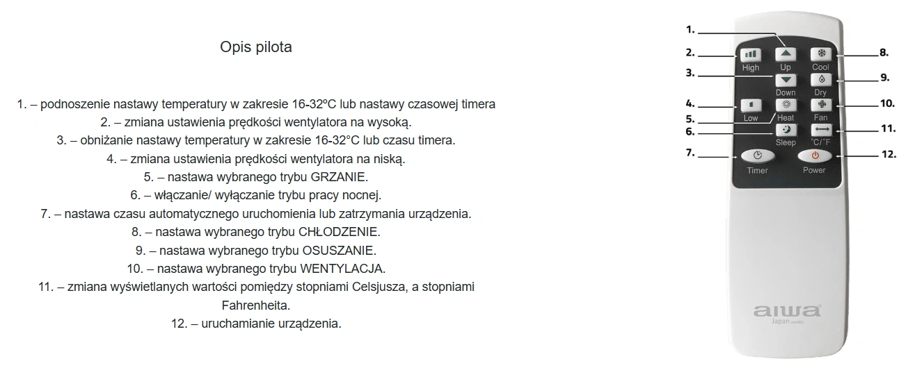Funkcje dodatkowe: Timer 24h, tryb nocny (Sleep), pilot zdalnego sterowania