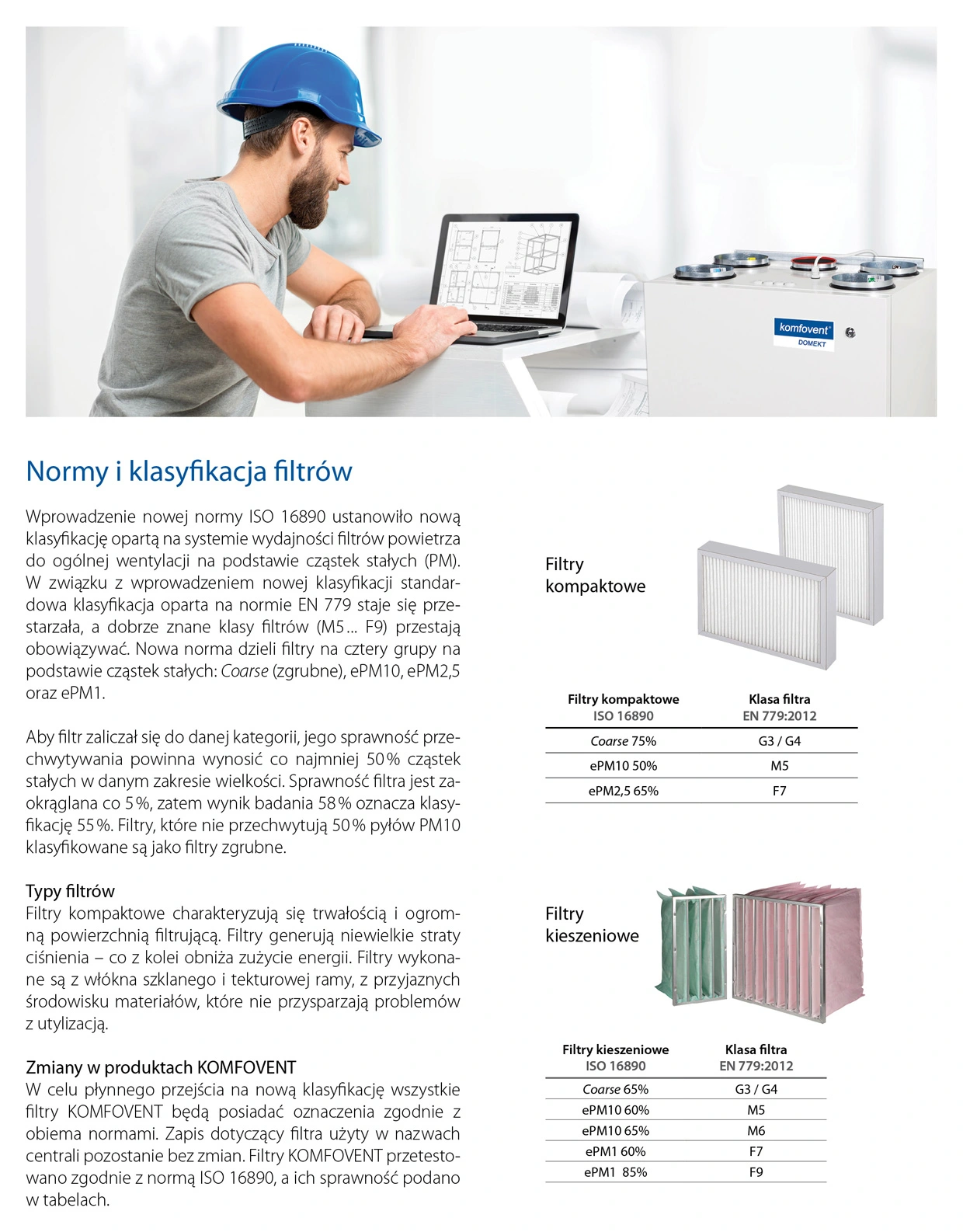 Wprowadzenie nowej normy ISO 16890 ustanowiło nową klasyfikację opartą na systemie wydajności filtrów powietrza do ogólnej wentylacji na podstawie cząstek stałych (PM). W związku Z wprowadzeniem nowej klasyfikacji standardowa klasyfikacja oparta na normie EN 779 staje się przestarzała, a znane klasy filtrów M5, F7 przestają obowiązywać. Nowa norma dzieli filtr na cztery grupy: Coarse (zgrubne), ePM10, ePM2,5 oraz ePM1.