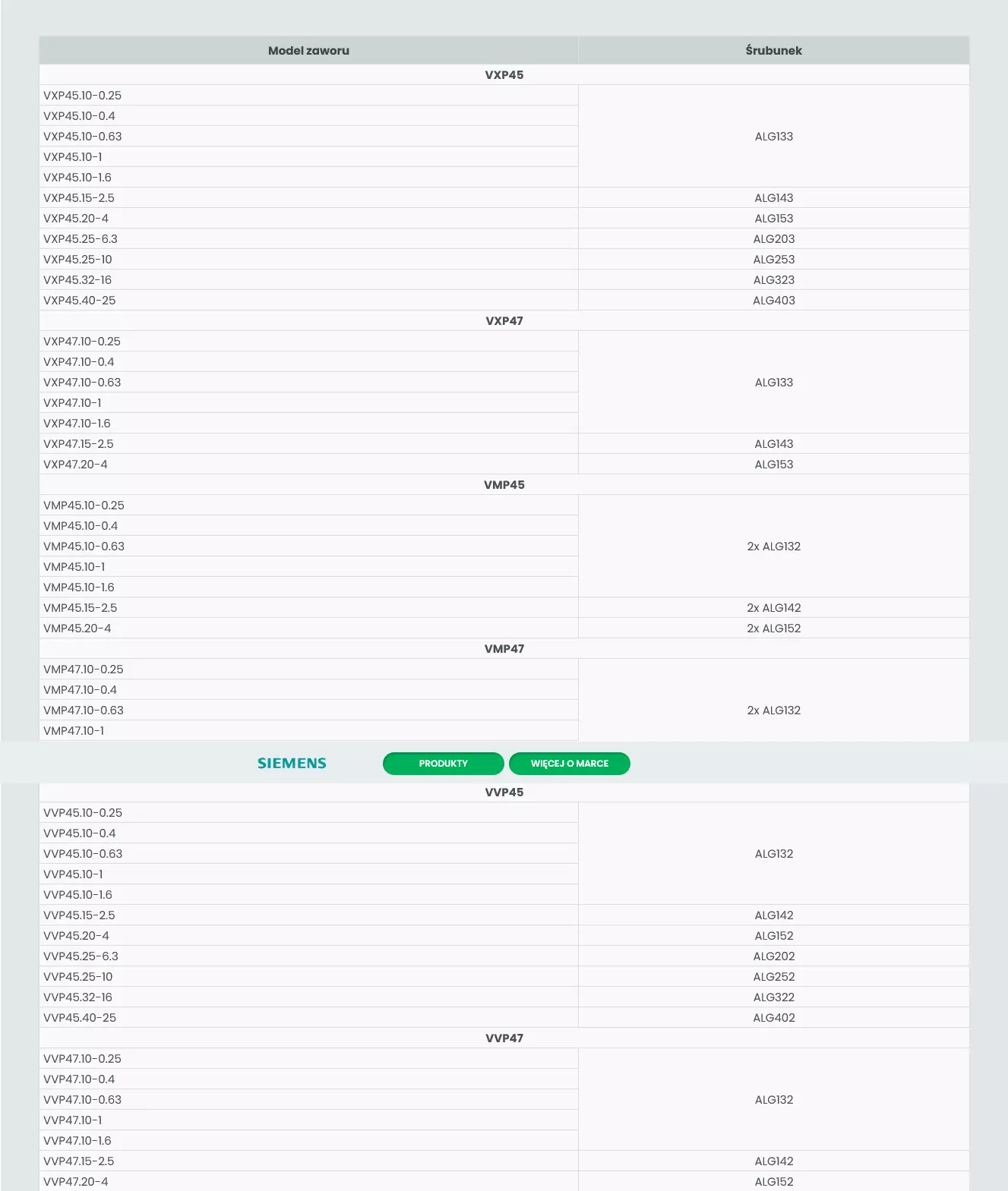 Komplet śrubunków ALG do zaworów trójdrogowych Siemens