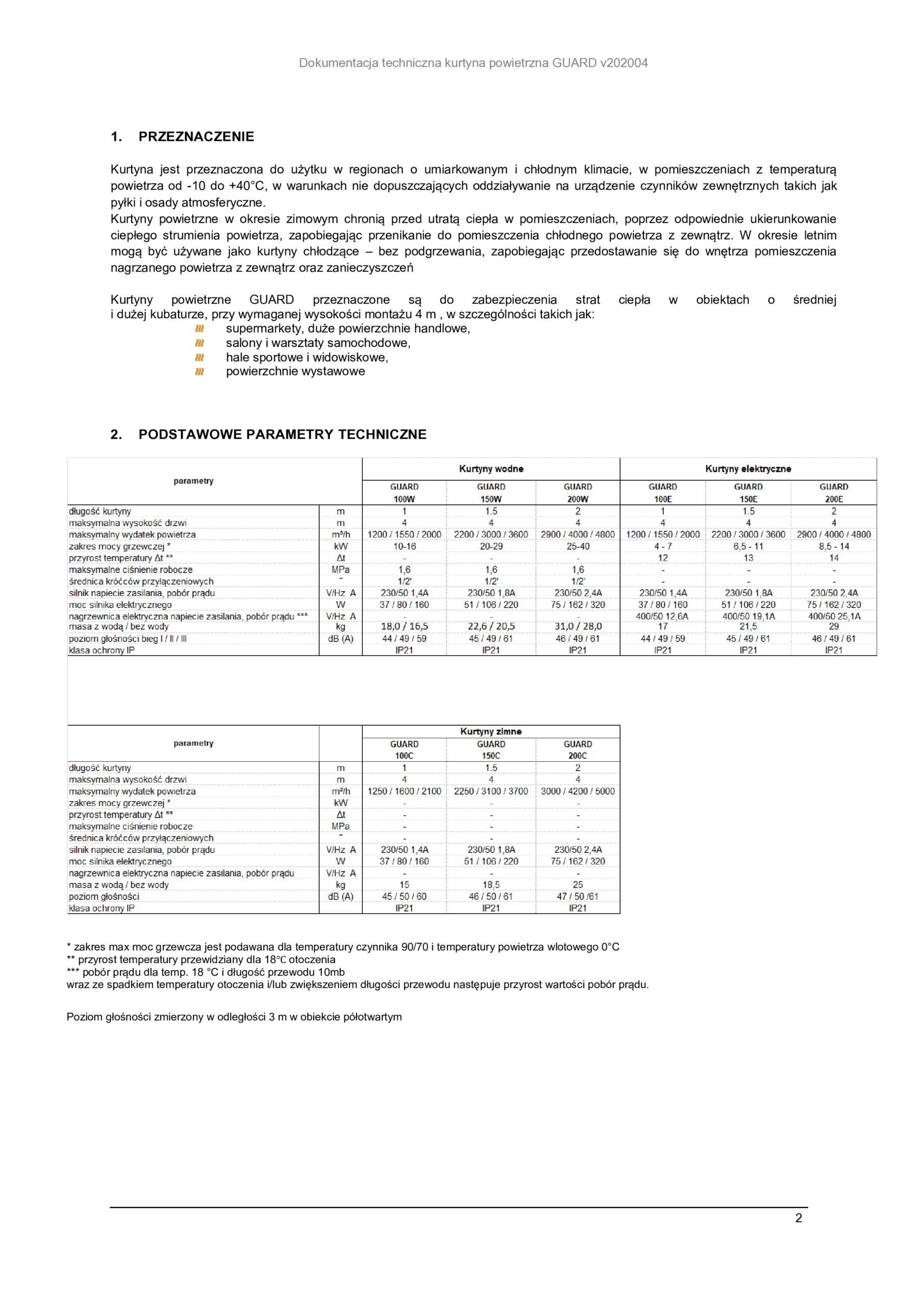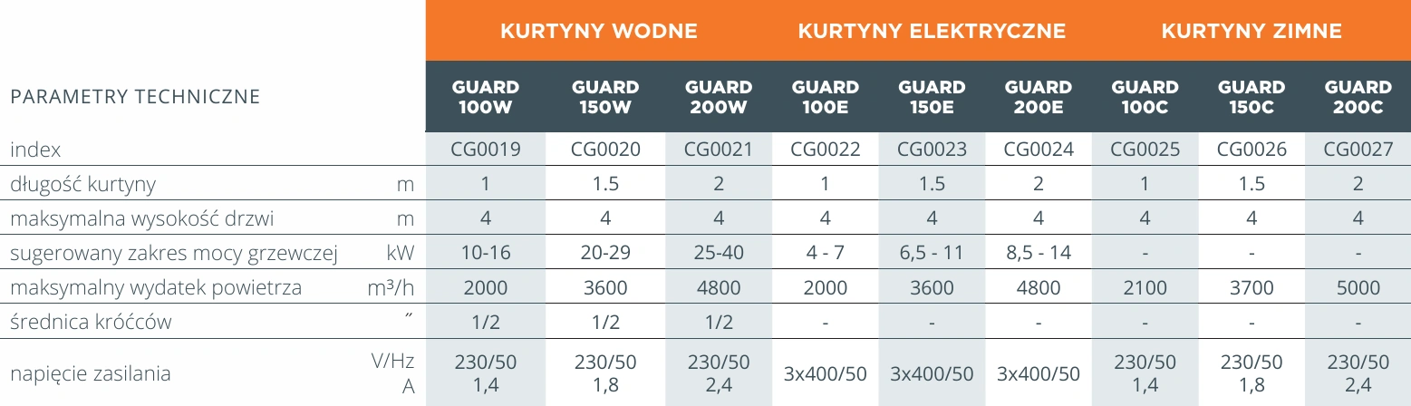 Kurtyna powietrzna elektryczna GUARD SONNIGER