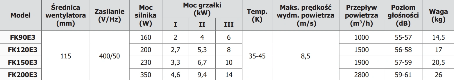 Kurtyna FERONO FK-E3 została wykonana z wysokiej jakości materiałów, które zapewniają długotrwałą trwałość i niezawodność. Obudowa ze stali malowanej proszkowo gwarantuje odporność na korozję i uszkodzenia mechaniczne. Wytrzymałe wentylatory oraz grzałki zaprojektowane do intensywnej eksploatacji pozwalają na bezproblemową pracę urządzenia nawet w trudnych warunkach. Dzięki zastosowanym rozwiązaniom minimalizowane są potrzeby konserwacyjne, co przekłada się na niższe koszty eksploatacji w dłuższym okresie użytkowania.