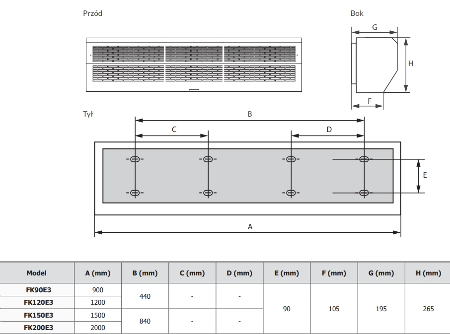 Kurtyna powietrzna FERONO FK-E3 ciepła