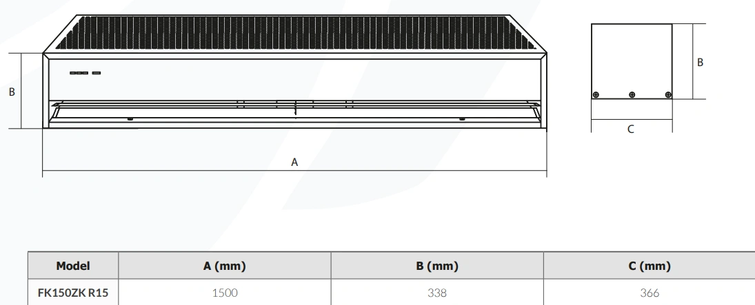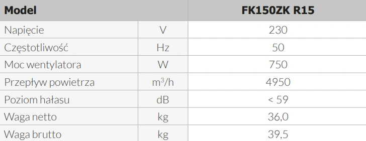 Kurtyna powietrzna FERONO FK150ZK R15 zimna do bram i wejść