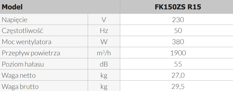 Obudowa FERONO FK150ZS R15 została wykonana z wytrzymałych materiałów, które gwarantują odporność na uszkodzenia mechaniczne oraz działanie wilgoci i kurzu. Stal malowana proszkowo zabezpiecza urządzenie przed korozją, co zapewnia długą żywotność nawet w wymagających warunkach. Solidne wentylatory i starannie zaprojektowane komponenty zapewniają niezawodną pracę oraz równomierny przepływ powietrza, co przekłada się na wysoką efektywność działania. Produkt został stworzony z myślą o intensywnej eksploatacji, co czyni go idealnym rozwiązaniem dla przestrzeni o dużym ruchu.