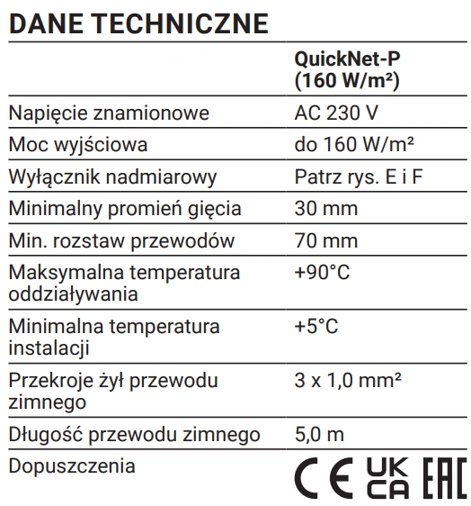 Mata grzewcza QuickNet R-QN-P jest samoprzylepna, co znacząco ułatwia instalację. Jej cienka konstrukcja (ok. 3,5 mm) pozwala układać ją bez konieczności znacznego podnoszenia poziomu posadzki. Montaż odbywa się bezpośrednio w warstwie kleju pod płytkami lub w cienkiej wylewce, co sprawia, że system jest niemal niewidoczny i doskonale zintegrowany z podłogą.