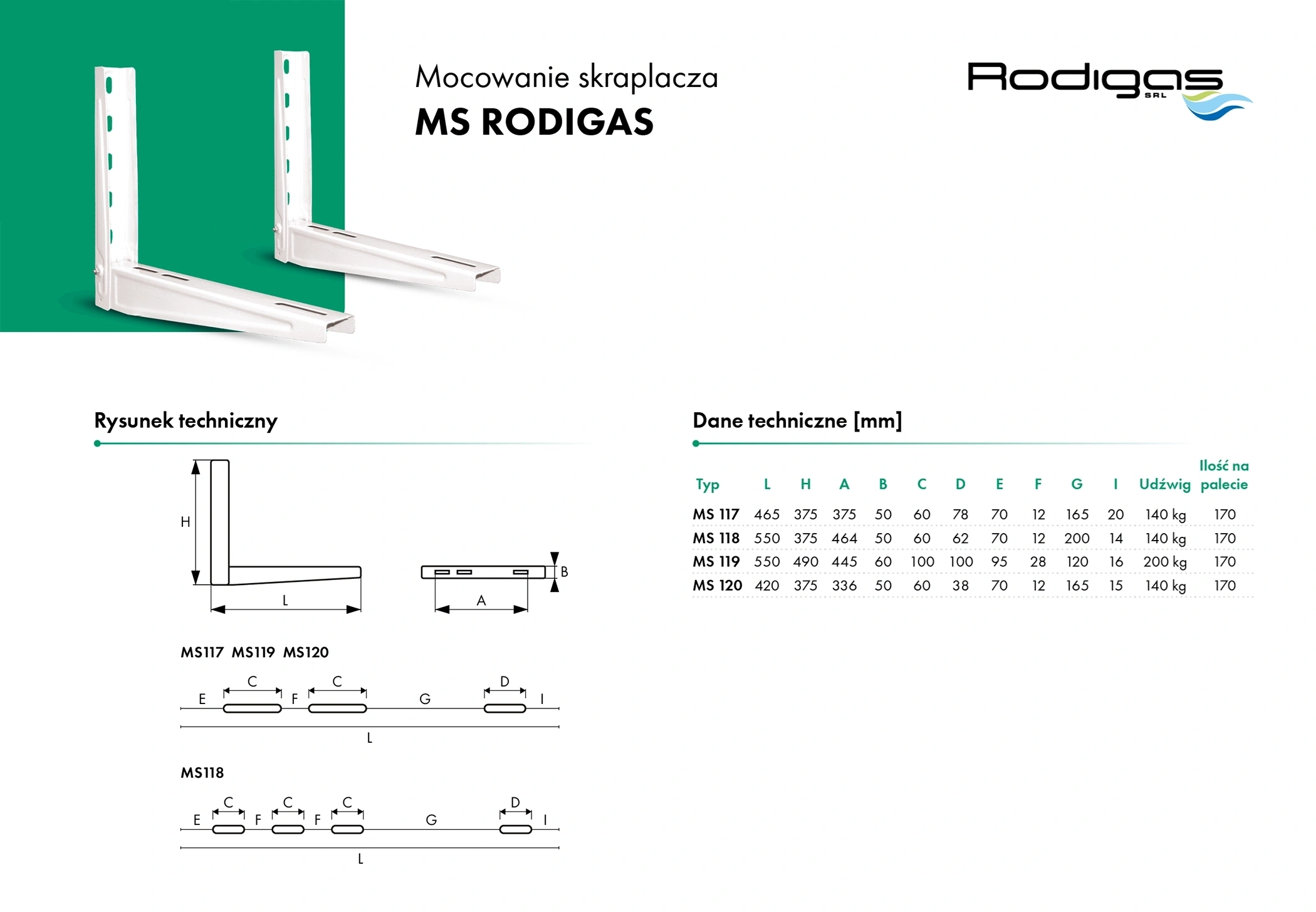 Mocowanie Skraplacza MS bez poprzeczki od RODIGAS to doskonałe połączenie solidności, precyzji wykonania i estetyki. Z certyfikatem jakości TUV stanowi pewny fundament dla skutecznych i trwałych instalacji jednostek zewnętrznych.