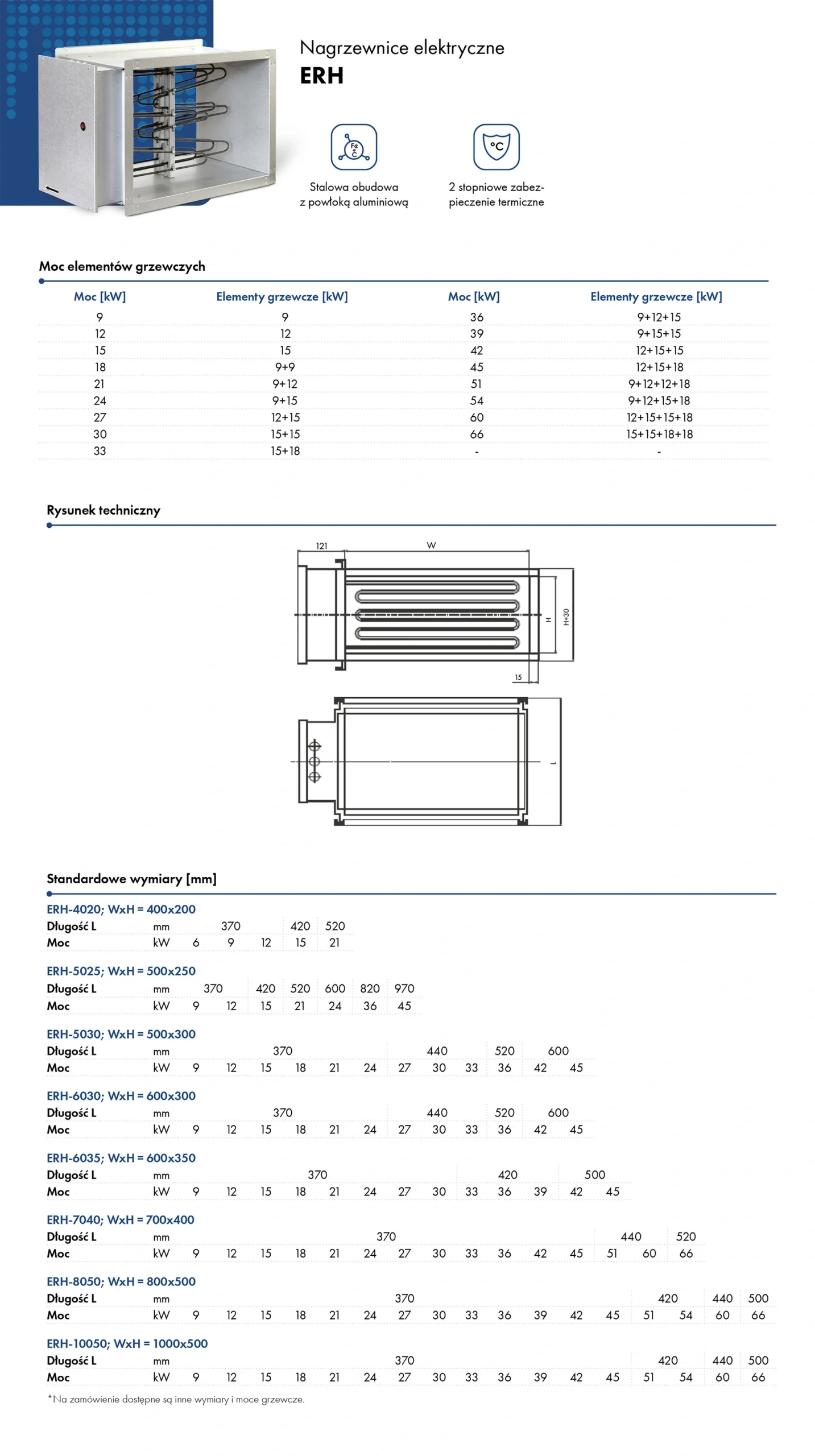 Nagrzewnice elektryczne są przeznaczone do podgrzewania czystego powietrza. Obudowa jest wykonana z alucynku, odpornego na podwyższoną temperaturę. Elementy grzejne są ze stali nierdzewnej. Celem regulacji mocy grzewczej należy stosować regulatory HRK 1 lub HRK 3.