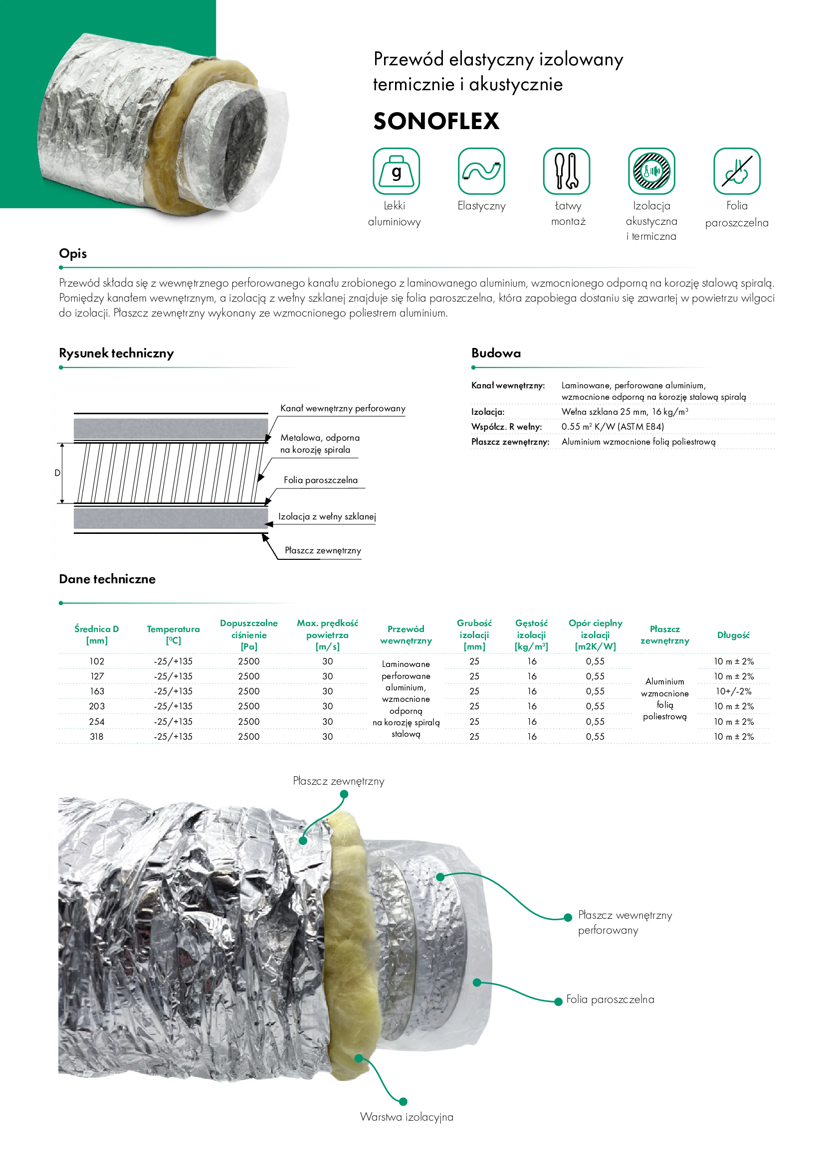 SONOFLEX HAVACO to doskonale zaprojektowany przewód wentylacyjny, który spełnia wymagania współczesnych instalacji HVAC. Jego konstrukcja zapewnia skuteczną izolację cieplną i akustyczną, trwałość oraz łatwość montażu. Dzięki zastosowaniu nowoczesnych materiałów jest nie tylko efektywny, ale również przyjazny środowisku i użytkownikowi. To wybór, który zapewnia ciszę, komfort i energooszczędność w każdym rodzaju budynku – zarówno mieszkalnym, jak i komercyjnym.