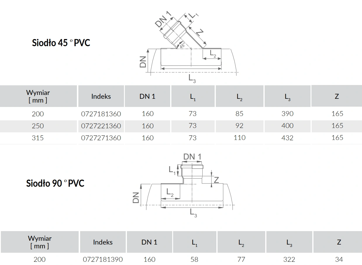 Model Przyłącze siodłowe PP 200x160/45