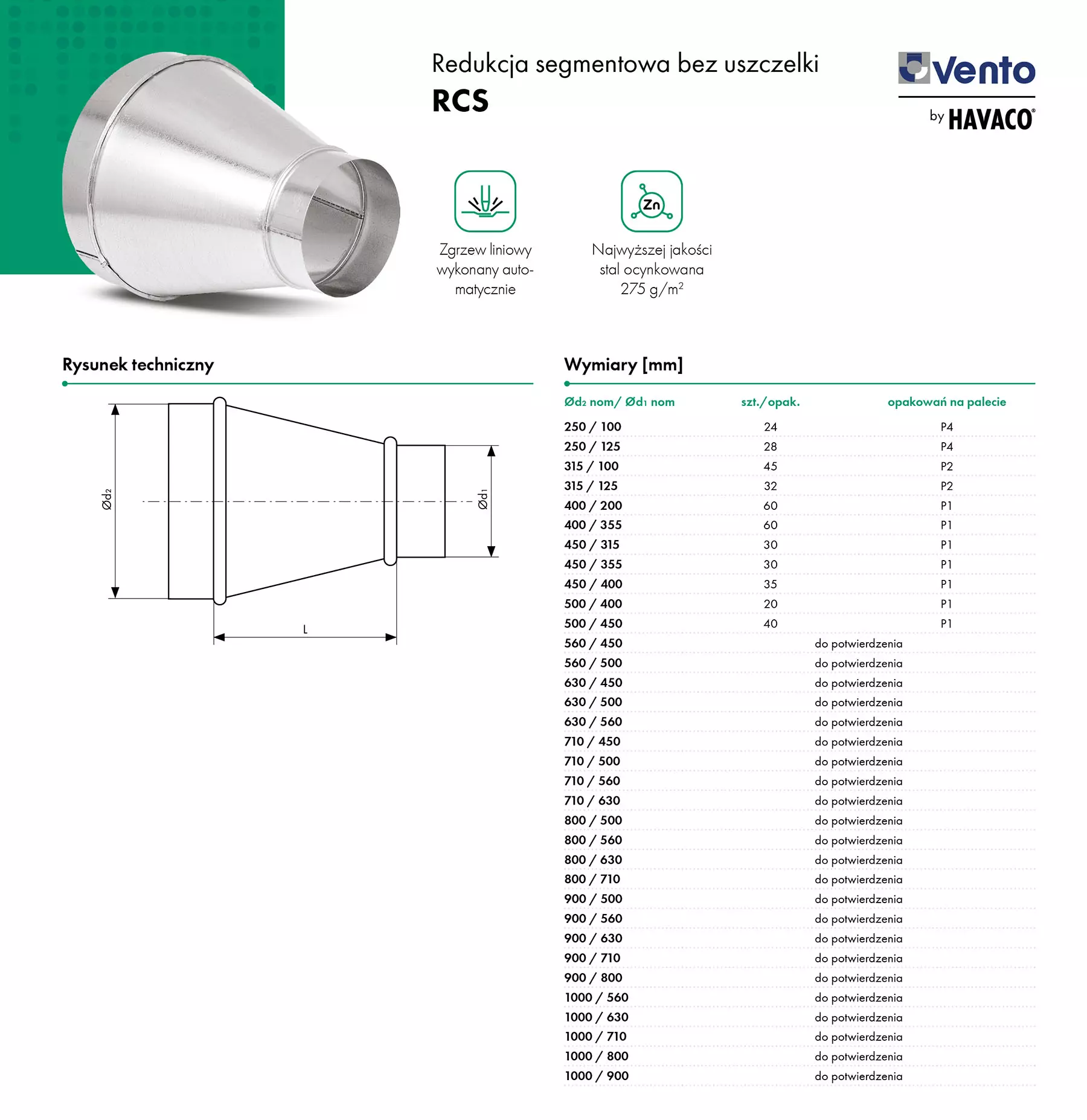 Redukcja segmentowa bez uszczelki RCS – Vento by HAVACO