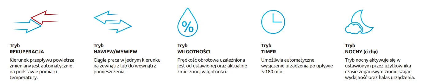 Model AHR160 Plus wyposażono w dodatkową funkcję podgrzewania powietrza nawiewanego, co czyni go wyjątkowym rozwiązaniem na chłodniejsze miesiące. Wbudowany element grzewczy zapewnia optymalną temperaturę powietrza w pomieszczeniach, nawet w warunkach ekstremalnie niskich temperatur zewnętrznych.