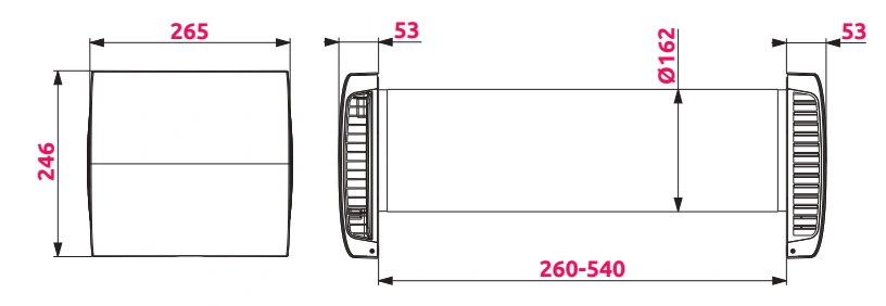 Rekuperator AHR160 Plus pracuje wyjątkowo cicho, dzięki czemu idealnie nadaje się do sypialni, salonów czy biur. Jego nowoczesny wygląd sprawia, że wkomponuje się w każdy styl wnętrza, a kompaktowe wymiary pozwalają na dyskretny montaż.