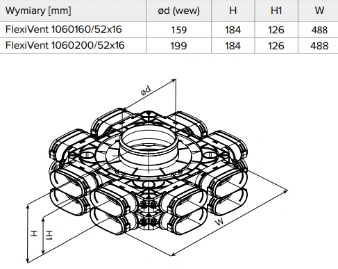 Produkt został wykonany z wytrzymałego tworzywa sztucznego odpornego na wilgoć, uszkodzenia mechaniczne oraz zmienne warunki atmosferyczne. Wysoka jakość materiałów gwarantuje długowieczność i niezawodność działania. Konstrukcja skrzynki skutecznie minimalizuje straty powietrza, jednocześnie podnosząc wydajność systemu wentylacyjnego.