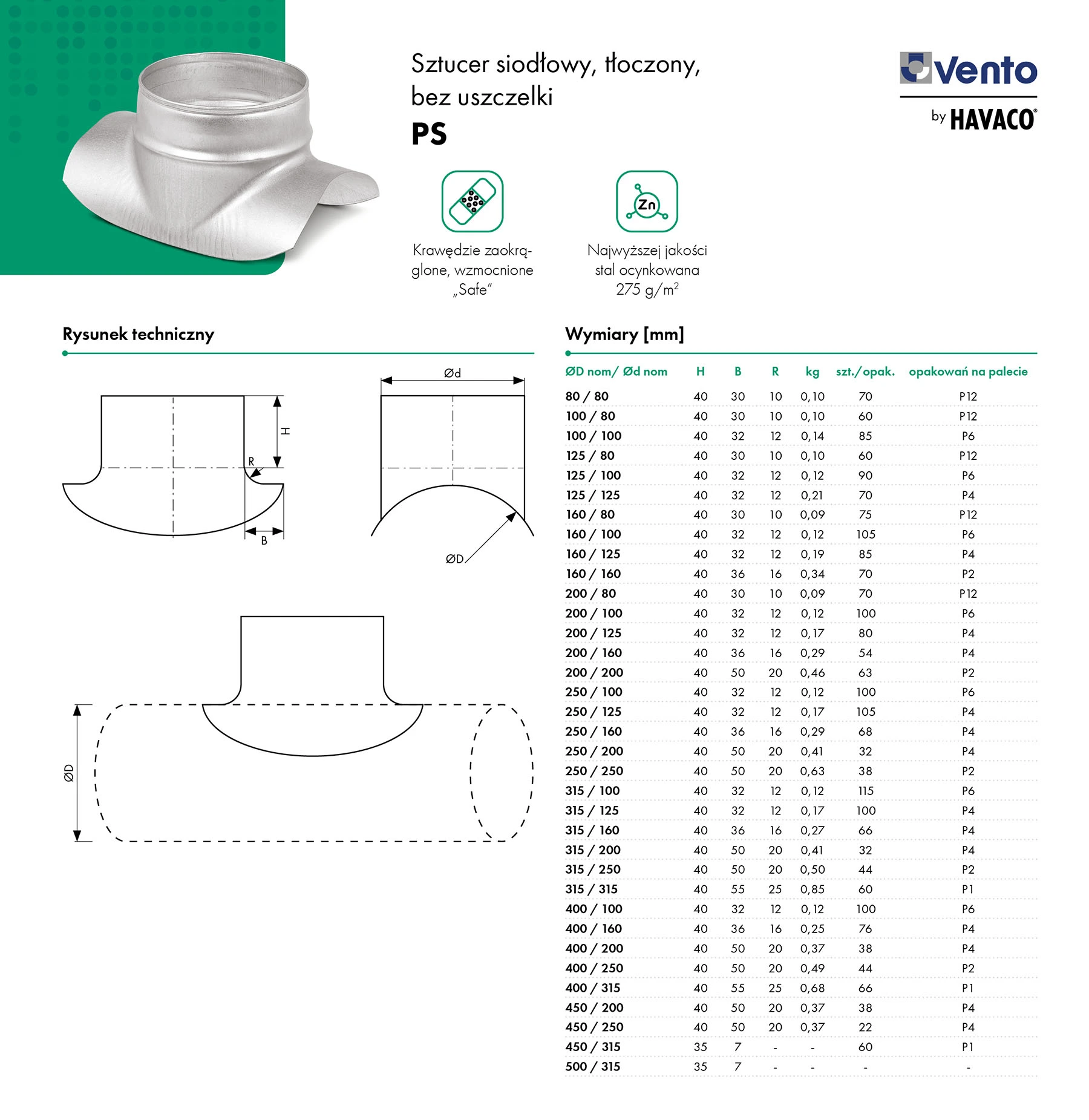 Sztucer siodłowy, tłoczony, bez uszczelki PS – Vento by HAVACO