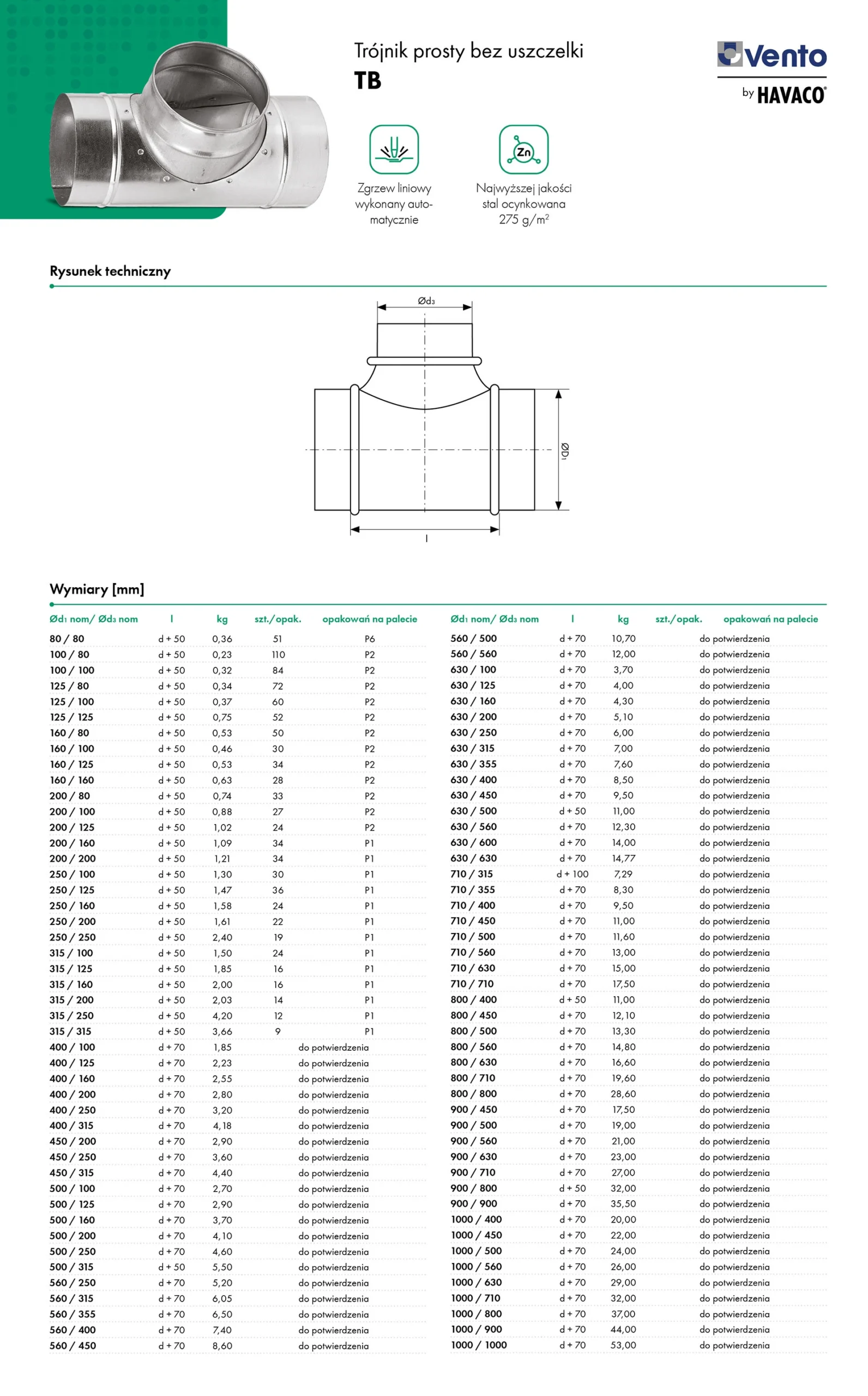 Trójnik prosty bez uszczelki TB – Vento by HAVACO
