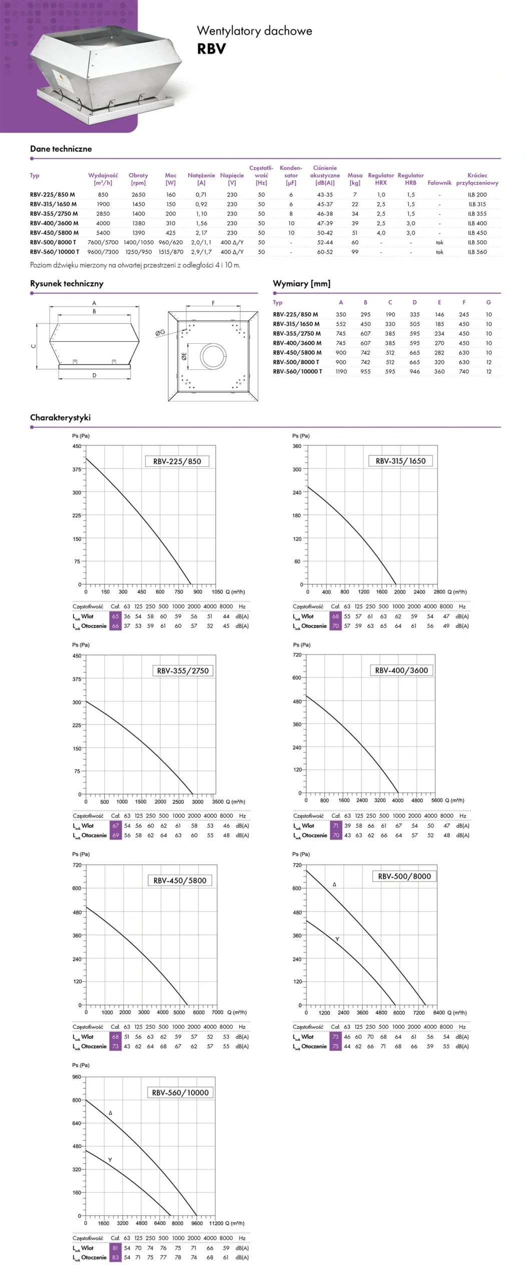 Wentylator dachowy, promieniowy z pionowym wyrzutem powietrza. Obudowa wykonana z blachy ocynkowanej. Wirnik o łopatach pochylonych do tyłu, wykonany z blachy ocynkowanej, wyważany dynamicznie. Specjalny system otworów drenażowych zapobiega przedostawaniu się wody deszczowej do wnętrza instalacji.