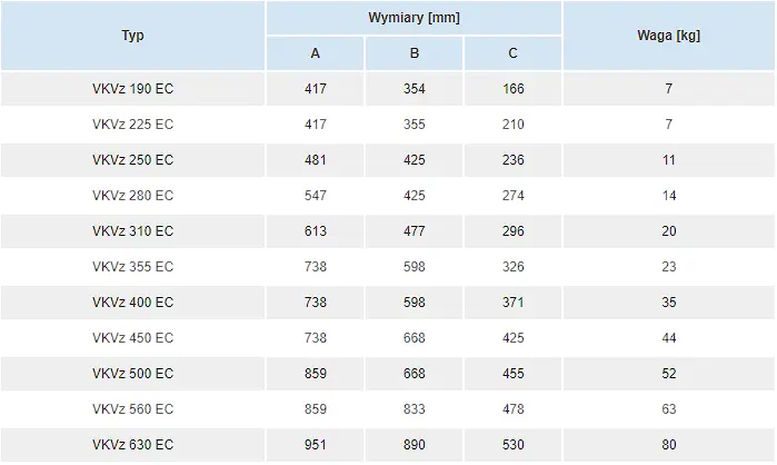 Wentylator dachowy Vents VKVz EC i VKHz EC z pionowym wyrzutem powietrza wykorzystywane są w wywiewnej wentylacji pomieszczeń wymagających energooszczędnych rozwiązań, przy zachowaniu efektywnej wymiany powietrza. Zastosowanie silników EC redukuje zużycie energii o 35% przy jednoczesnym utrzymaniu wysokiego poziomu wydajności i niskiego poziomu hałasu. Zalecane do instalacji w obiektach użytku publicznego takich jak banki, supermarkety, sklepy, restauracje. Wentylatory przeznaczone są do montażu na podstawach dachowych lub tłumiących.