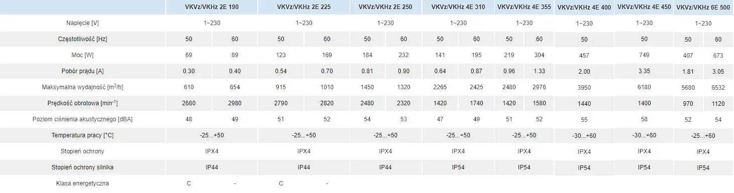 2-, 4- lub 6-biegunowy jedno- lub trójfazowy asynchroniczny silnik z zewnętrznym wirnikiem z łopatkami wygiętymi do tyłu. Silnik jest wyposażony w termiczne zabezpieczenie przed przegrzaniem z automatycznym restartem, a także łożyska kulkowe zapewniające długą żywotność. Turbina jest dynamicznie wyważana podczas montażu, co zapewnia precyzyjne funkcjonowanie, bezpieczną obsługę i niski poziom hałasu. Stopień ochrony silnika IP44, IP54.