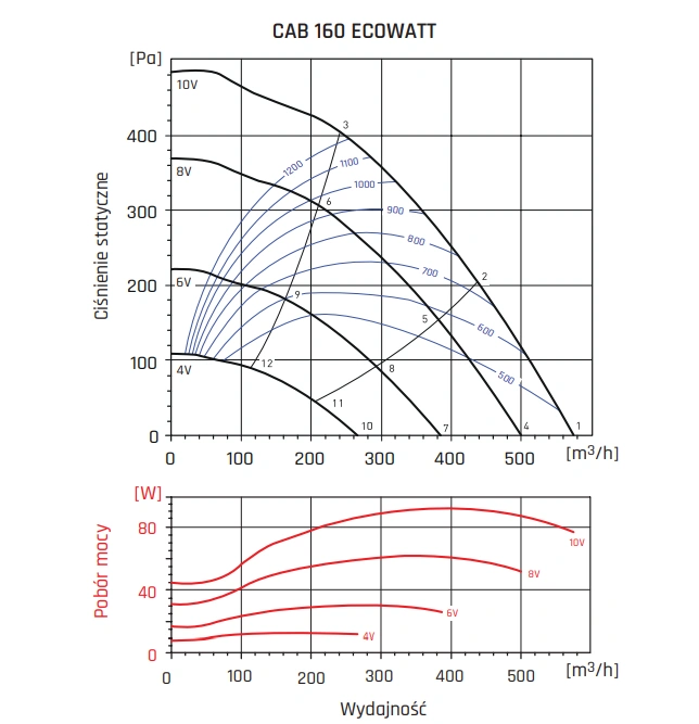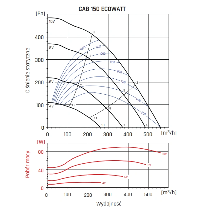 Model CAB ECOWATT wyposażony jest w wirnik z łopatkami pochylonymi do tyłu, co poprawia charakterystykę przepływu i zapewnia większą odporność na zabrudzenia. To rozwiązanie wpływa korzystnie na trwałość i stabilność działania, nawet przy długotrwałej eksploatacji w trudnych warunkach.