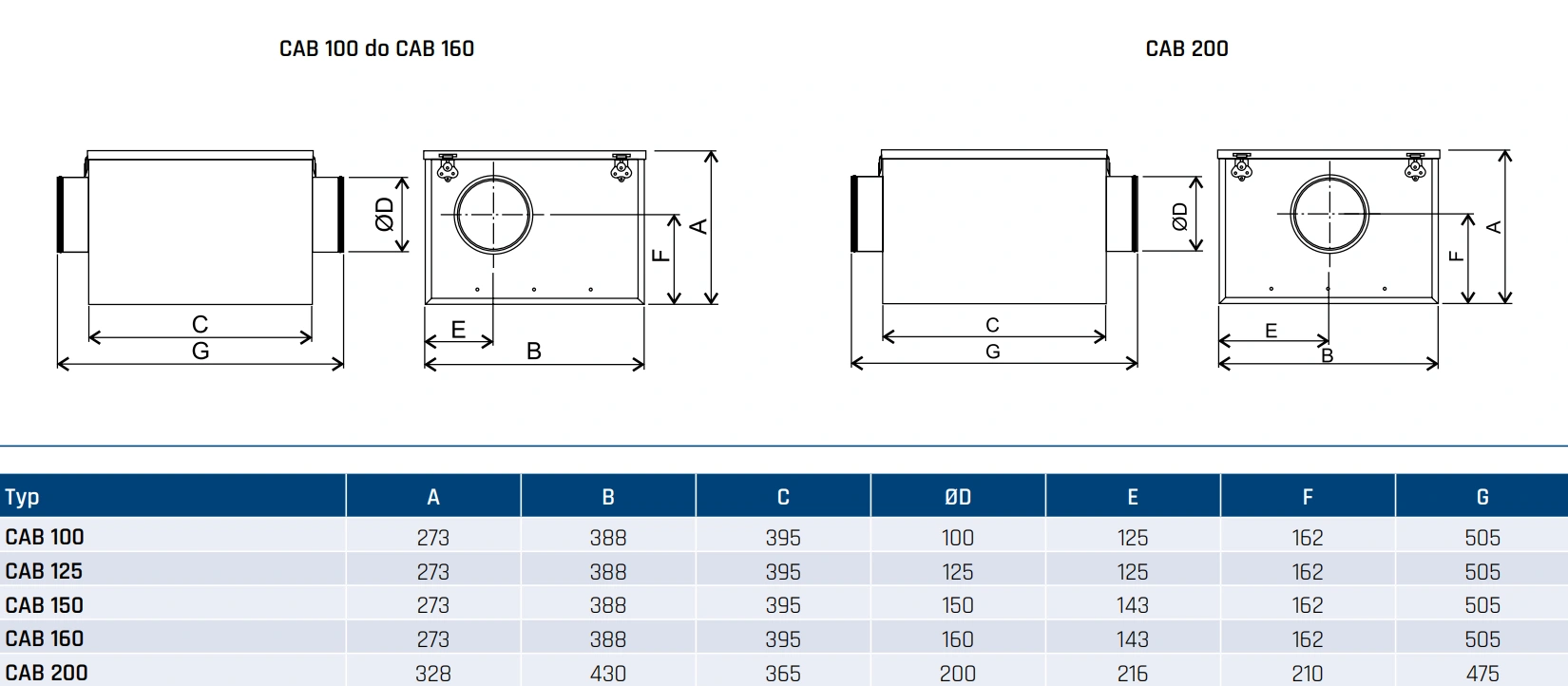 - stopień ochrony IP44, klasa izolacji B (CAB 100 do CAB 200),