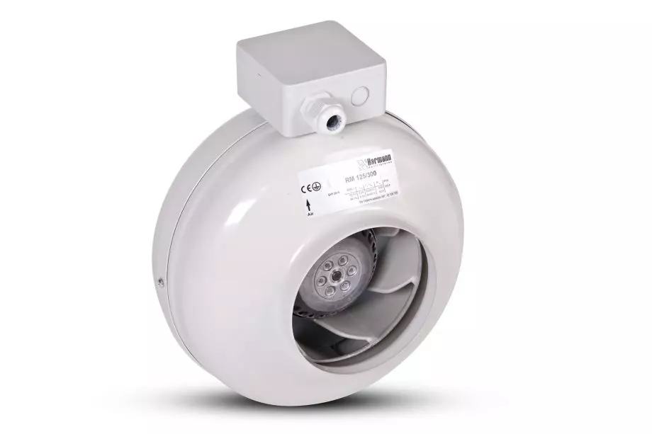 Wentylator Kanałowy RM Harmann to promieniowy wentylator kanałowy wykonana z tłoczonej blachy stalowej cynkowanej galwanicznie i lakierowanej epoksydowo na kolor szary (RAL 7035). Obudowa wyposażona w puszkę przyłączeniową. Wentylator posiada jednofazowy, asynchroniczny silnik elektryczny 230V, 50Hz z wirującą obudową, a wyważany dynamicznie wirnik typu B stanowi jego integralną część.