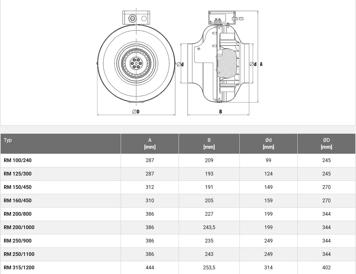 Wentylator Kanałowy RM Harmann