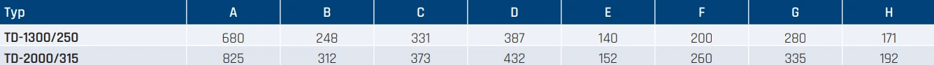 - Obudowa z blachy stalowej malowanej farbą epoksydowo-poliestrową (modele TD-1300, TD-2000),