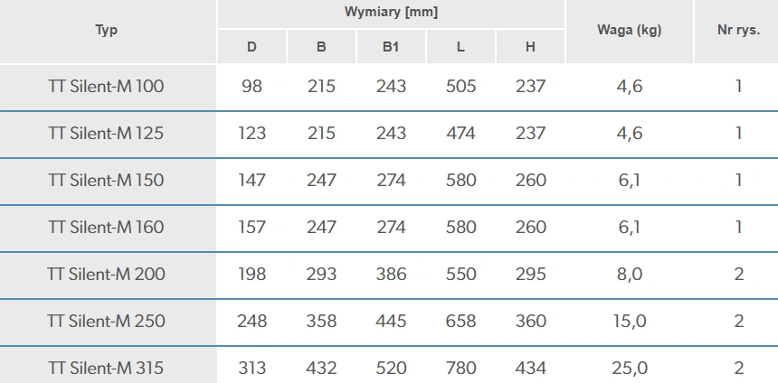 Wentylator TT SILENT M został wykonany z trwałych materiałów, co zapewnia długą żywotność urządzenia nawet w trudnych warunkach pracy. Jego kompaktowa konstrukcja umożliwia łatwy montaż w systemach kanałowych o różnych rozmiarach. Prosta instalacja sprawia, że urządzenie można szybko i bezproblemowo zamontować w większości systemów wentylacyjnych.