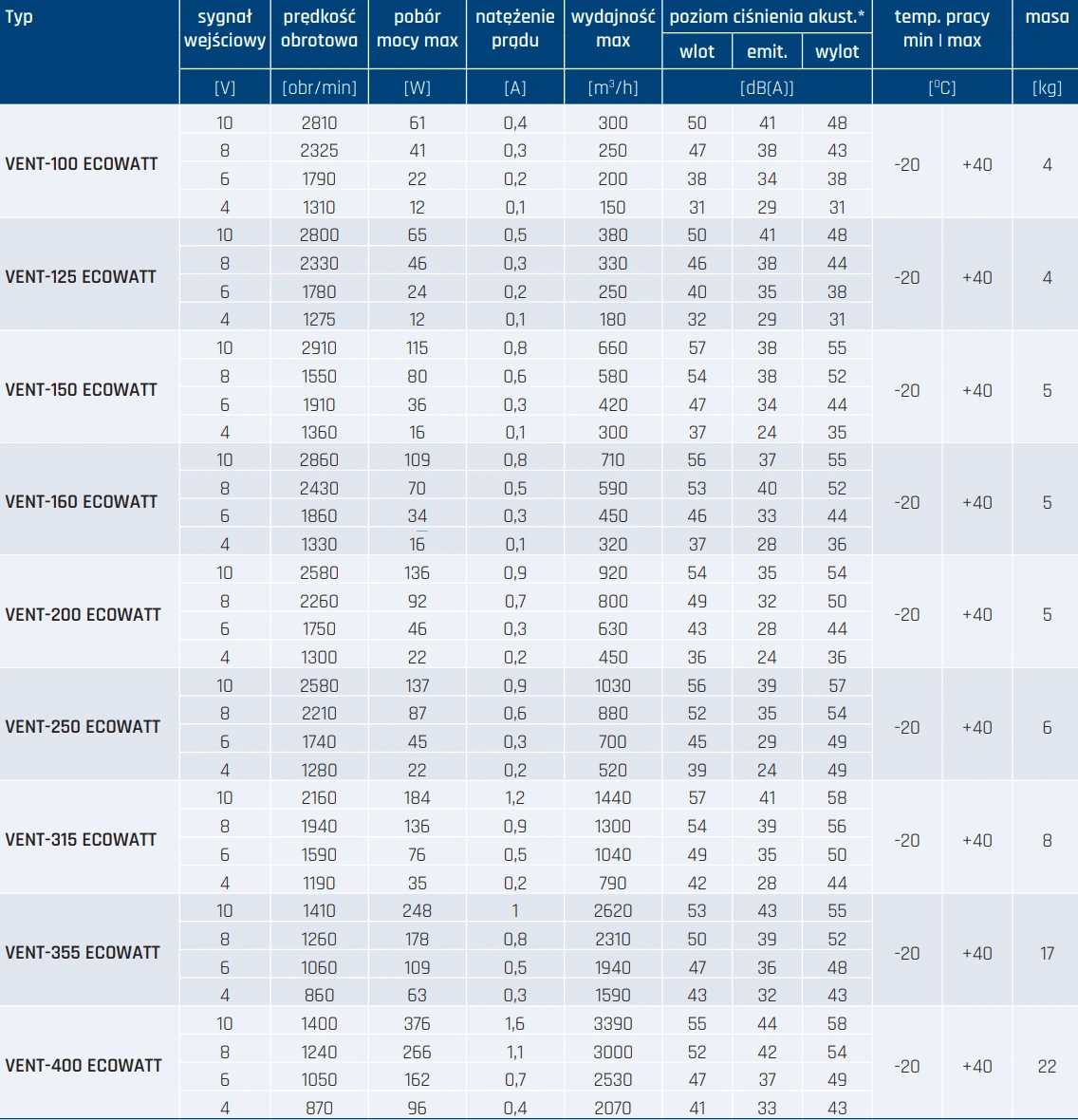 VENT ECOWATT to seria zaprojektowana z myślą o wymagających użytkownikach, którzy cenią sobie wysoką wydajność, energooszczędność oraz bezproblemową regulację parametrów pracy. Urządzenia te świetnie nadają się do systemów z zmiennym zapotrzebowaniem na powietrze, np. w pomieszczeniach użyteczności publicznej, serwerowniach czy obiektach komercyjnych.