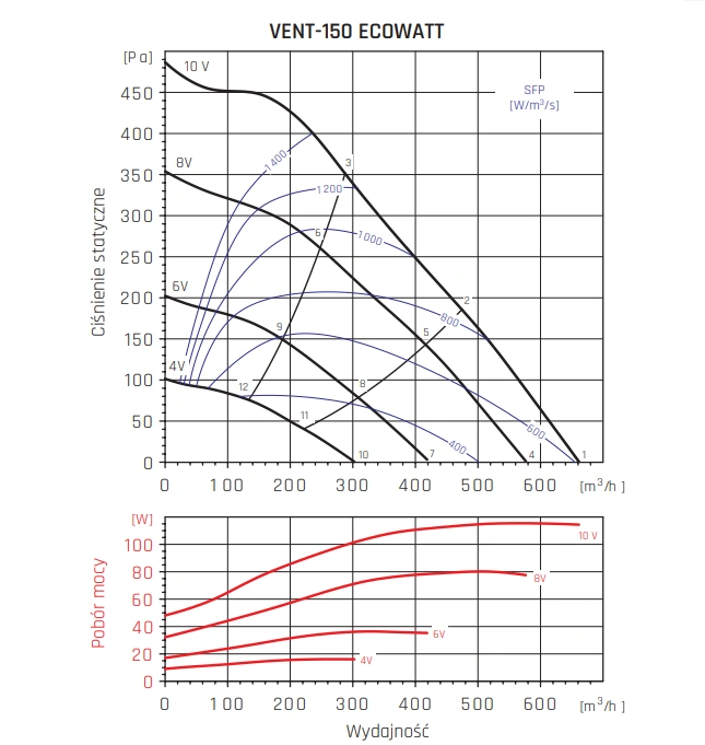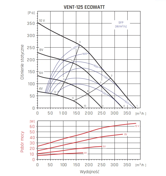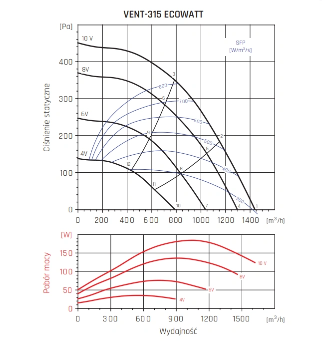 Wentylatory VENT ECOWATT napędzane są nowoczesnymi, jednofazowymi silnikami EC (Electronically Commutated) o napięciu 230V +/- 15%, 50/60Hz. Te zaawansowane technologicznie jednostki oferują wysoką sprawność energetyczną, cichą pracę oraz możliwość precyzyjnej regulacji prędkości.