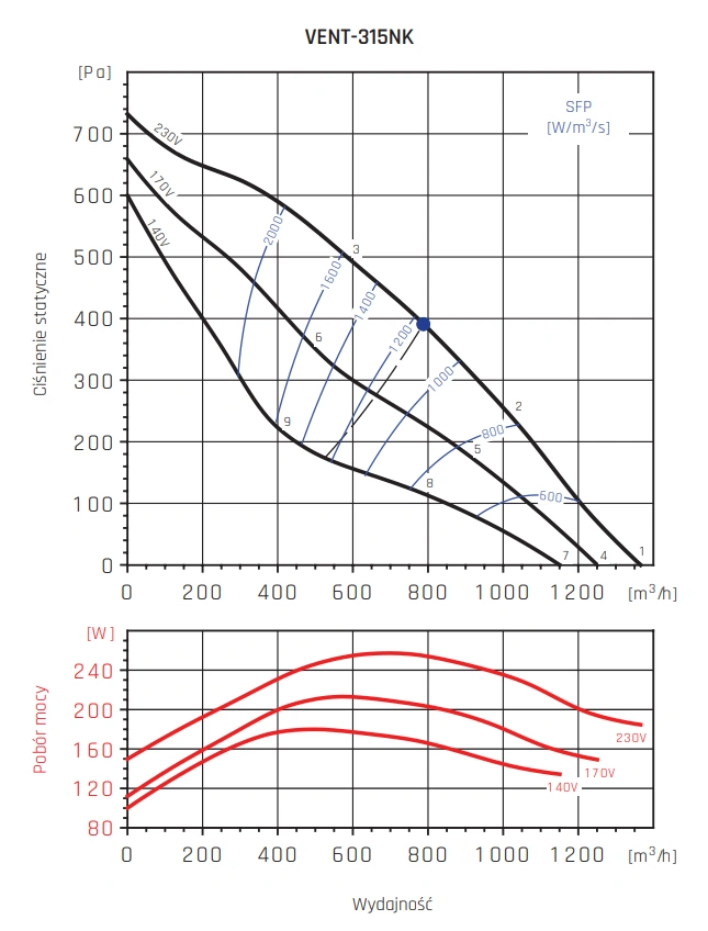 Wszystkie modele z serii VENT-NK (od 100 do 315) posiadają jednofazowe silniki z wirującym stojanem 230V, 50/60Hz. W zależności od modelu, zastosowano różne klasy izolacji i stopnie ochrony:
