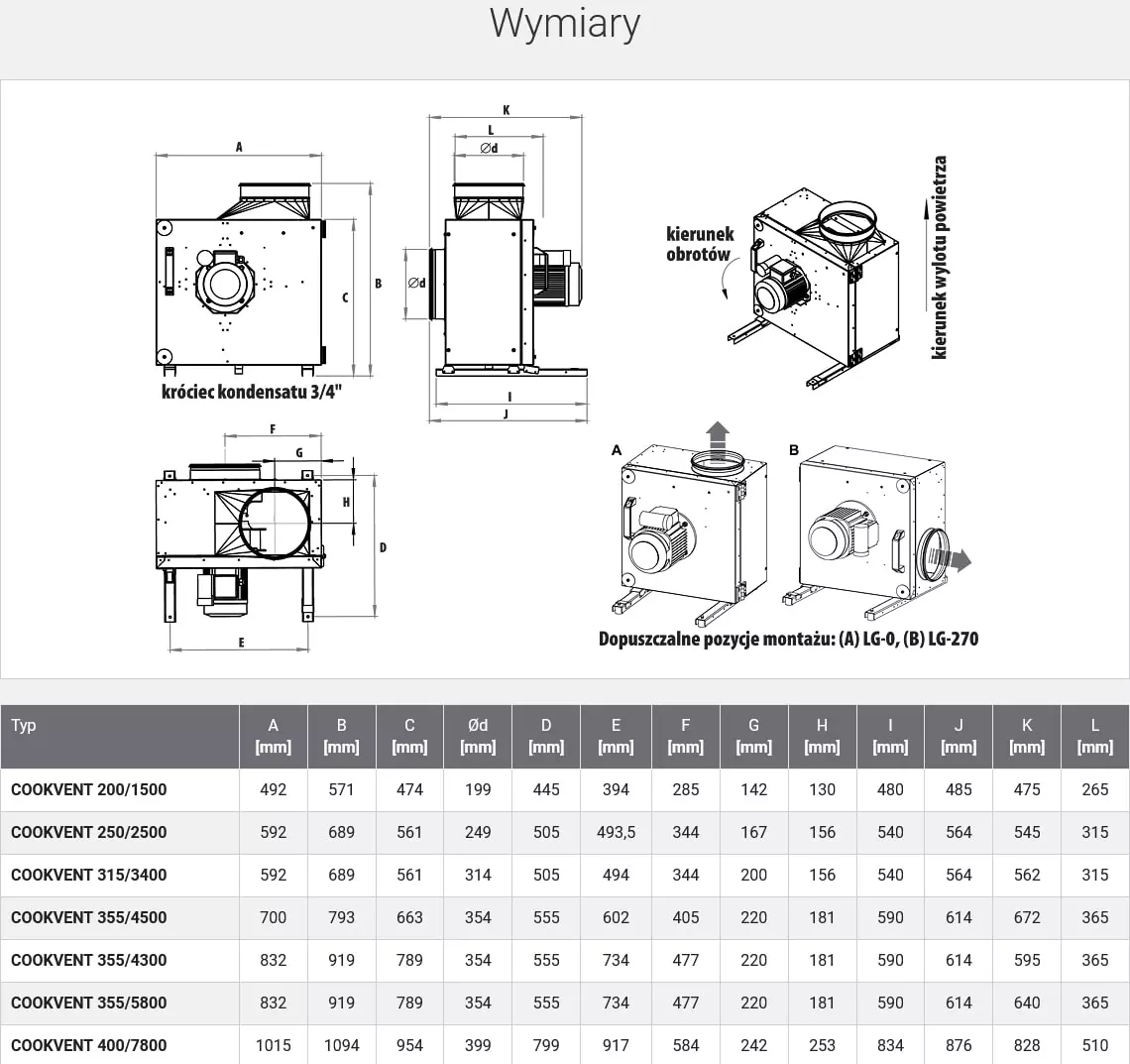 - konstrukcja ułatwiająca odpływ skroplin z wnętrza wentylatora