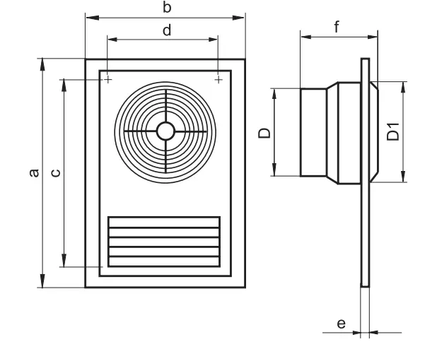 - Króciec wylotowy pozwala wmontować wentylator w ciąg wentylacyjny lub przyłączyć do kanału wentylacyjnego Ø 100, 125 mm.